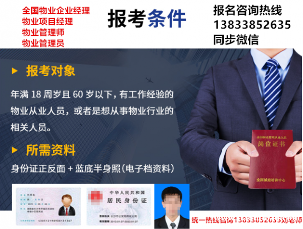 1.物业企业经理2.物业总经理报名咨询刘老师3.物业管理员,4.物业管理师5.带铜牌物业职业经理人报名咨询刘老师